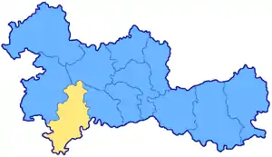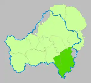 (в границах 1927 года). Голубым цветом показана граница современной Брянской области.