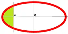 Площадь сегмента между дугой, выпуклой влево, и вертикальной хордой, проходящей через точку с абсциссой можно определить по формуле[3]: