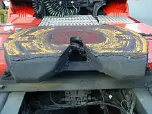 Представляет собой грузонесущую плиту, имеющую одну (в продольной плоскости) или две (в продольной и поперечной плоскостях) степени свободы, с угловой прорезью для вхождения установленного на опорной поверхности полуприцепа шкворня, который служит для сцепки полуприцепа с тягачом, а также является осью излома автопоезда в повороте. Механизм сцепки-фиксации расположен под опорной плитой.