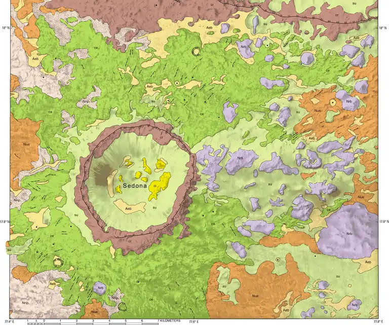 Осыпавшиеся породы кромки кратера (cr) или залежи неопределённого (осадочного или вулканического) происхождения, сформировавшиеся внутри кратеров Седона и Анджелика в поздний нойский период и впоследствии размытые эрозией до нынешнего состояния. Может коррелировать со слоем Nue[2].