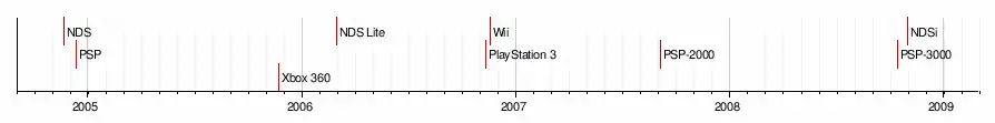 Хронология выпуска основных игровых консолей седьмого поколения:
