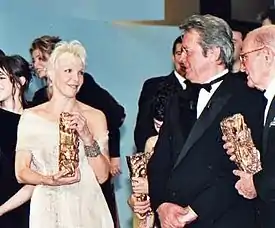 трижды обладательница «Сезара» режиссёр Тони Маршаль и президент 25-й церемонии Ален Делон
