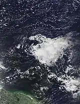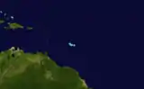 18 сентября к восток-юго-востоку от Малых Антильских островов возникла большая область ненастной погоды в связи с прохождением тропической волны[105]. Из-за воздействия сильного сухого ветра циклон долгое время не получал существенного развития[106], но к шести часам утра 22 сентября все же смог усилиться до тропической депрессии[107], получившей порядковый номер 11, но уже на следующий день циклон ослаб до остаточного минимума и его отслеживание было прекращено[108]. Никаких сообщений о жертвах и разрушениях не поступало, циклон перемещался в открытом океане и на сушу не выходил.
