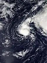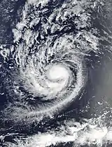 | Интенсивность | 100 км/ч (65 mph) (1-мин), 990 гПа (мбар) | ||