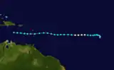 3 июля NHC начал отслеживать тропическую волну, сформировавшуюся над тропическими водами Атлантического океана. Циклон быстро усиливался, к 18 часам (МСК) 5 июля сформировался в тропическую депрессию[22], к 21:30 - усилился до тропического шторма, получившего имя Берил[23], а утром следующего дня - до урагана первой категории[24].Век циклона был недолог - к 18:00 (МСК) 7 июля он ослаб до тропического шторма[25], который на следующий день ослаб до остаточного минимума[26]. Однако остатки циклона продолжили движение на запад и 14 июля попытались возродится в качестве субтропического шторма[27], который окончательно распался утром 16 июля[28]. Ураган Берил стал вторым (после аналогичного урагана сезона 1933 года) в списке самых ранних ураганов атлантического бассейна[29]. Сообщений о жертвах и существенном ущербе не поступало.