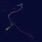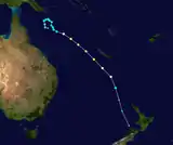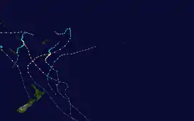 Вечером 21 января RSMC в Нанди сообщил, что тропическое возмущение «07F» образовалось в 570 километрах к северо-западу от Нумеа, в Новой Каледонии[58]. В течение следующего дня возмущение постепенно становилось всё более организованным, и вечером RSMC доложил, что циклон вырос до тропической депрессии[59]. Утром 22 января RSMC опубликовал финальный отчёт о тропической депрессии и циклон перешёл в зону ответственности метеорологической службы Новой Зеландии (TCWC). Через несколько часов служба сообщила, что циклон ослаб и больше не является тропическим.