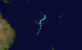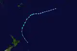 27 ноября циклон переместился в менее благоприятный регион, но продолжил усиливаться и становиться более организованным[10]. Несмотря на ураганные ветры, депрессия не получила классификацию по шкале ураганов Саффира — Симпсона как тропический циклон, так как эти ветры находились на удалении 110 километров от центра циклона[11]. Во второй половине дня 28 ноября депрессия достигла минимума атмосферного давления в 999 гПa (мБар)[12]. В течение нескольких следующих дней, с продвижением системы на юг, произошло её постепенное ослабление. К 30 ноября депрессия была деклассифицирована как тропический циклон и в последний раз была замечена 1 декабря около линии перемены дат[13][14].