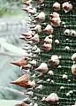 Плоды представляют собой яйцевидные коробочки 20 см в длину, в которых находятся мелкие чёрные семена, окружённые пушистой волокнистой массой, напоминающей хлопок или шелк[2].