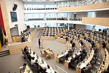 10 сентября 2007 года осенняя сессия Сейма началась в новом зале пленарных заседаний (руководитель проекта архитектор Альгимантас Насвитис), пристроенном к сложившемуся комплексу зданий Сейма.[5]
