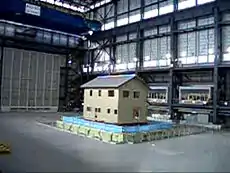 Здание в натуральную величину на E-Defense сейсмоплатформе в Японии.