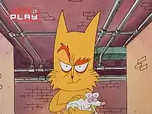 - Мяус (англ. Maws) — один из главных помощников Кошмара. Крупный красный (позднее рыжий) кот с огромными металлическими зубами. Носит короткий зелёный галстук. Является прямой пародией на Челюсти из фильмов о Джеймсе Бонде. Появляется в сериях «Сумерки», «Дело о коварных кошках» и «ДНК».