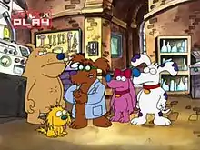 - Нудли (англ. Noodle) — пудель, спецагент, специалист по логическим связям. Говорит с явным французским акцентом (кроме ранних серий). Считает себя превосходным кулинаром. Живёт в Париже, хозяйка - молодая шатенка.
