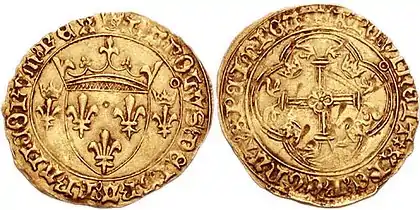 Золотой Экю с секретной полой точкой под 5-й буквой легенды, Карл VII