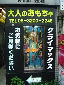 Чаще всего подобные магазины скрываются за вывеской «Интим-магазин», «Магазин для взрослых», либо же просто «Секс-шоп», или «магазин укрепления семьи»[1]. Также весьма распространены онлайн секс-шопы, продающие товар в режиме онлайн, через интернет.