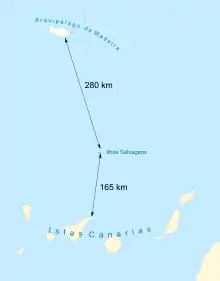Острова Селваженш — часть макаронезийской группы островов северной части Атлантического океана. Архипелаг находится на расстоянии 280 км от острова Мадейра и 165 км — от Канарских островов. Расстояние между самыми крупными островами (Большой Селважем и Малый Селважем) — 15 км. Площадь островов — 2,73 км². Острова окружены опасными рифами.