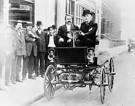 ![]() За рулём автомобиля в 1905 году | |