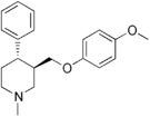 Пароксетин является наиболее мощным ингибитором обратного захвата серотонина из всех СИОЗС[37]. Обладает также сродством к норадреналиновым, дофаминовым, гистаминовым и мускариновым ацетилхолиновым рецепторам[38], к альфа1-, альфа2- и бета-адренергическим рецепторам[39].