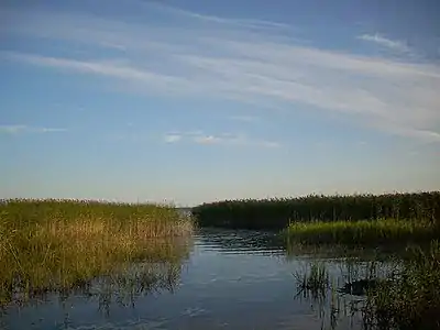 Почти все берега озера окаймляет прибрежно-водная растительность: на песчаных отмелях — тростник и осока, в заводях и заливах — камыш, рогоз, рдесты, белые кувшинки и жёлтые кубышки.