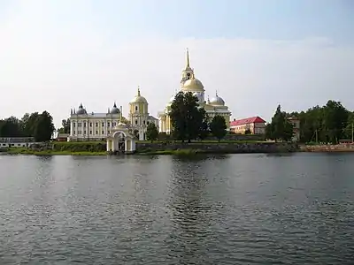 На озере, на острове Столобный, расположен монастырь Нилова Пустынь, основанный в честь Нила Столобенского.