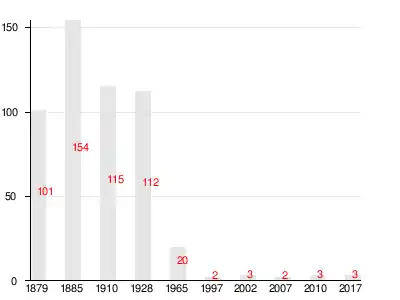 Число жителей по семейным спискам 1879 г.: 53 м. п., 48 ж. п.; по приходским сведениям 1879 г.: 53 м. п., 47 ж. п.[3]