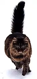 Тело: Кошка от среднего до крупного размера, мускулистая и компактная. Грудь, плечи и спина широкие и массивные. Шея кроткая и крепкая. Ноги средней длины, мощные, на толстых и круглых лапах. Хвост средней длины, толстый с закругленным кончиком.