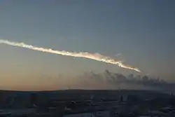 ![]() Падение метеорита в Челябинской области, снятое из дома на Селькоровской улице | |