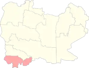 Расположено на юго-западе района, в 60 км от районного центра. Граничит: