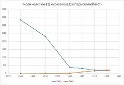 В годы Советской власти производством сельскохозяйственной продукции в Пермской области занимались колхозы и совхозы.