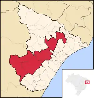 Сельскохозяйственный район штата Сержипи на карте.