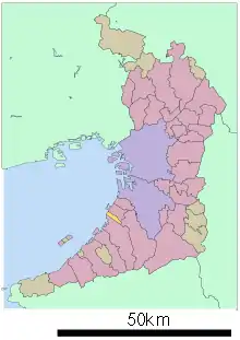 Уезд Сембоку в префектуре Осака (выделен жёлтым)