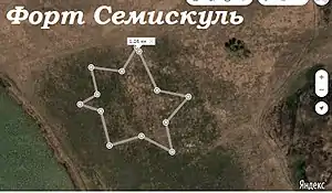 Уроженцем села Одино Семискульского сельсовета Александром Шапоренко при помощи сервиса Yandex Карт удалось установить местонахождения укрепления. Он пишет: «…а) у северо-восточной части озера Семискуль Мокроусовского района Курганской области имеется правильный контур старинного форта с координатами 67,09255183 %2C55.84459075; б) это не рядовой редут, ибо имеет четкие очертания бастионов и равелинов в) хорошо просматриваются южный, западный и северный бастионы; юго-западный, северо-западный и часть северо-восточного равелина, юго-западная часть форта имеет неправильный контур, что нередко случалось в те времена, либо разрушена сельскохозяйственной деятельностью; г) в качестве гласиса выступает берег озера Семискуль с запада; с юга и востока урочище Куртан, которое нередко соединялось с Семискулем протокой и сетью болот; по северу гласиса шла (согласно старинным картам дорога направлением на Ишим, (существует грунтовой путь и сейчас). Диаметр форта составляет с севера на юг (от угла северного бастиона до угла южного) 363 метра. Площадь форпоста составляет 6 гектар и сопоставимо с Звериноголовской, Омской, Семипалатной крепостями XVIII века».