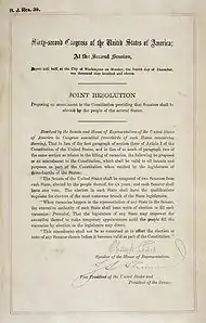 К 1912 году 239 политических партий уровня и Федерации и штатов поддержали некоторого рода прямые выборы сенаторов, а 33 штата ввели их прямые первичные выборы[2]. 27 штатов потребовали конституционной конвенции по данному вопросу; для созвания конвенции было достаточно требования 31 штата; Аризона и Нью-Мексико были приняты в состав США как штаты в 1912 году (с ними штатов стало 48), и ожидалось, что они поддержат ходатайство о конвенции, тогда как Алабама и Вайоминг, уже являвшиеся штатами к тому времени, приняли резолюции в пользу конвенции без формального требования о ней[28]. Во избежание «неудержимой конвенции», на которой могли быть рассмотрены неожиданные или вредные поправки, предложение об обязательных прямых выборах в Сенат в конце концов было представлено Конгрессу; 12 июня 1911 года оно было принято Сенатом 64 голосами против 24 (четверо не голосовали), а 13 мая 1912 года одобрено Палатой представителей 238 голосами против 39 (110 не голосовали). К 8 апреля 1913 года предложенная поправка была ратифицирована 3/4 штатов,[29] что добавило её в Конституцию США. Госсекретарь США Уильям Дженнингс Брайан формально объявил о принятии данной поправки 31 мая 1913 года[30].