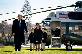 Иванка Трамп и её муж Джаред Кушнер имеют троих детей: дочь Арабеллу Роуз (род. 17 июля 2011)[25] и двоих сыновей Джозефа Фредерика (род. 14 октября 2013)[26] и Теодора Джеймса (род. 27 марта 2016)[27]. Эрик Трамп и его жена Лара имеют двоих детей: сына Эрика Люка (род. 12 сентября 2017)[28] и дочь Кэролайн Дороти (род. 19 августа 2019)[29].