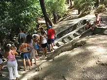 Представляет собой мощный родник, выходящий на поверхность в семи рядом расположенных местах. Поток воды из родника впадает в реку Лутанис, которая затем попадает в бетонный туннель, построенный итальянцами в 1930-х годах специально для сбора воды и направления её в искусственное озеро. Озеро используется как небольшое водохранилище для орошения района Колимбия, и является единственным на Родосе водоемом с пресной водой.