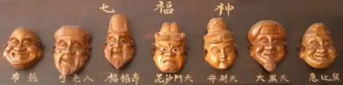 - Хотэй — бог сострадания и добродушия, изображается в виде старика с большим животом. Существовало поверье, что если потереть живот фигурки Хотэя 300 раз, думая о чём-то хорошем, то загаданное обязательно исполнится. Первоначально китайский монах Цицы.