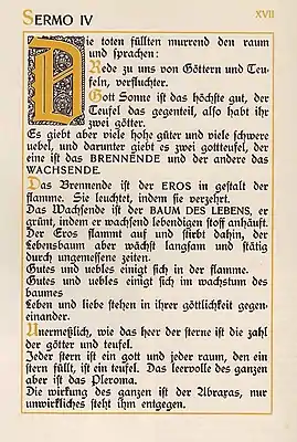 Современные исследователи характеризуют «Семь проповедей» как «краткое откровение „Красной книги“»[1]. Это единственная часть творческого материала из рукописей «Красной книги», которую Юнг более или менее публично распространял при жизни[2].