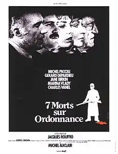 «Семь смертей по рецепту» (фр. Sept morts sur ordonnance) — фильм, криминально-психологическая драма режиссёра Жака Руффио. Франция, 1975 год. В СССР демонстрировалась ограниченным прокатом в мае 1977 года под названием «В сетях мафии».