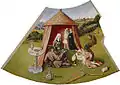 - Похоть — две влюблённые пары наслаждаются под розовым тентом, а два шута развлекают их.