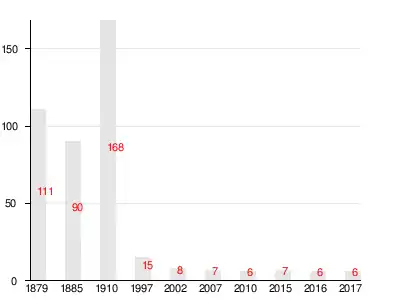 Число жителей по семейным спискам 1879 г.: 35 м. п., 36 ж. п.; по приходским сведениям 1879 г.: 39 м. п., 38 ж. п.