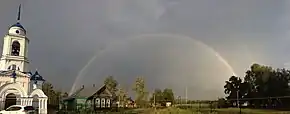 Каменный храм построен в 1813 году графом Иваном Петровичем Салтыковым, прадедом писателя Салтыкова-Щедрина и помещиком Талызиным. Престолов в нём два: главный (холодный) — в честь Вознесения Господня и в приделе (теплый) — в честь иконы Знамения Божией Матери[2].