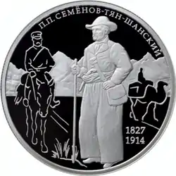 - 16 января 2017 года Банк России выпустил в обращение памятную серебряную монету номиналом 2 рубля посвящённую 190-летию со дня рождения географа П. П. Семёнова-Тян-Шанского[14].