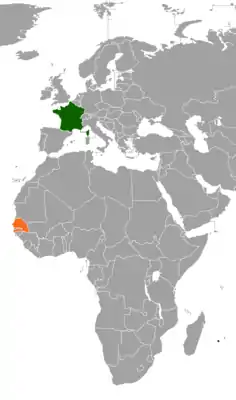 Сенегал имеет посольство в Париже и генеральные консульства в Бордо, Лионе и Марселе, а также консульское учреждение в Гавре. В свою очередь, Франция имеет посольство в Дакаре.