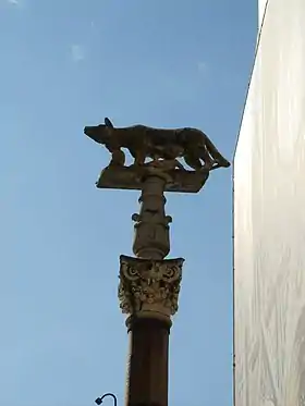 Согласно легенде, братья бежали из Рима на лошадях, одна из которых была белой, другая — чёрной. Возможно, отсюда родилась легенда о происхождении символической расцветки герба Сиены, верхняя часть которого белая, а нижняя чёрная[1]. Но существует и иная версия возникновения этой символики: в некоторых повествованиях говорится, что во время побега братьев оберегали окружавшие их облака — днём белое, ночью тёмное. Также сообщается, что перед тем, как покинуть Рим, братья выкрали статую Капитолийской волчицы из храма Аполлона. Впоследствии она была назначена символом Сиены и стала носить имя Сиенской волчицы (Lupa senese)[2]. Поскольку Сений и Аский являлись потомками Рема, Сиена и сиенцы также заполучали право называться потомками одного из братьев, вскормленных волчицей, сделавшейся символом Рима.