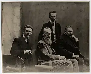 Н.А.Римский-Корсаков и А.К.Глазунов со своими учениками М.М.Черновым и В.А.Сениловым(слева). Фото 1906 г.