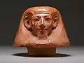 ![]() Скульптурный портрет, изображающий сидящего Сенмута с Нефрура на руках. Британский музей | ||||