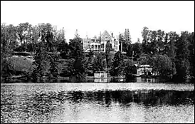 ![]() Вид на реку Сенничку и главный усадебный дом, начало XX века | |