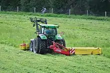 В крупных хозяйствах же используется механизированные методы, так скашивание травы производится косилками и косилками-плющилками, агрегатируемыми с тракторами и самоходными шасси, а также самоходными косилками.[3].