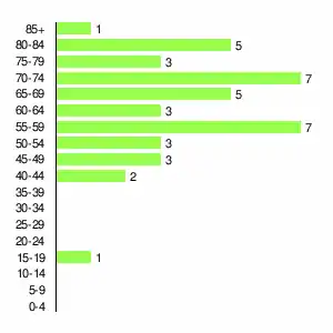| Жителей | 511 | 528 | 465 | 300 | 121 | 76 | 72 | 74 | 40 |