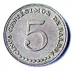 Монета номиналом 5 сентесимо, Панама