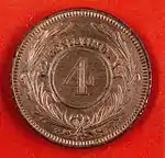 Монета номиналом 4 сентесимо 1869 года, Уругвай